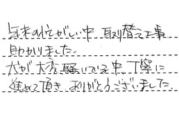 年末の忙しい中、取り替え工事助かりました。犬が大変騒いでいる中、丁寧に進めて頂き、ありがとうございました。