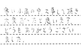 寒い小雨の中、工事して頂き、大変だったと思います。どうもありがとうございました。