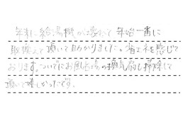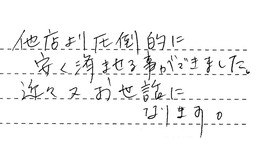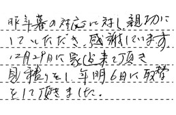 昨年暮の対応に対し、親切にしていただき、感謝しています。12月29日に家に来て頂き、見積りをし、年明6日に取替をして頂きました。