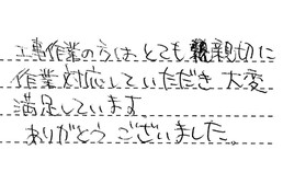 工事作業の方は、とても親切に作業対応していただき、大変満足しています。ありがとうございました。