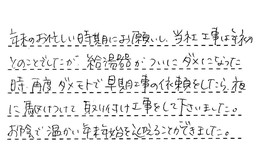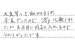年末にもかかわらず、対応して頂き、大変助かりました。ありがとうございます。