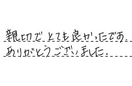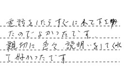電話をしたら、すぐに来て下さったので、よかったです。親切に色々説明をしてくれて、良かったです。