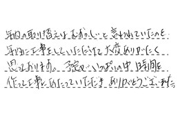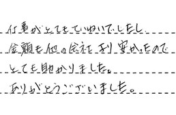 仕事がとてもていねいでしたし、金額も他の会社より安かったので、とても助かりました。ありがとうございました。