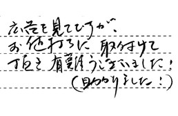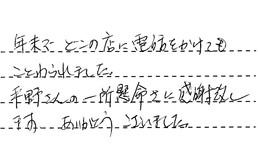 年末で、どこの店に電話をかけても、ことわられました。平野さんの一所懸命さに感謝します。ありがとうございました。
