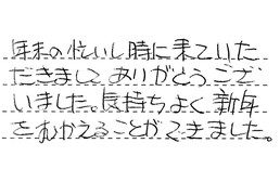 年末の忙しい時に来ていただきました。ありがとうございました。気持ちよく新年をむかえることができました。