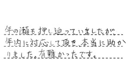 年の瀬も押し迫っていましたが、年内に対応して頂き、本当に助かりました。有難かったです。
