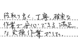 段取り良く、丁寧、確実な作業で、安心できる満足な交換作業でした。