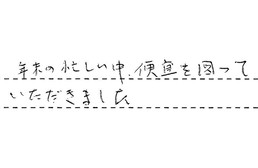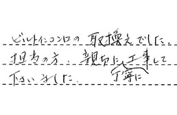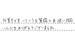 作業中でもいろいろな質問にも快い対応いただき、ありがとうございました。