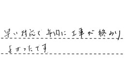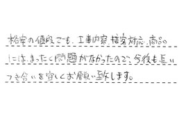 格安の値段でも、工事内容、接客対応、商品には、まったく問題がなかったので、今後も長いつき合いを宜しくお願い致します。