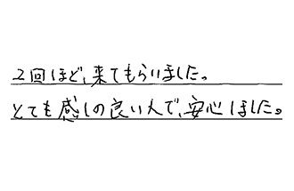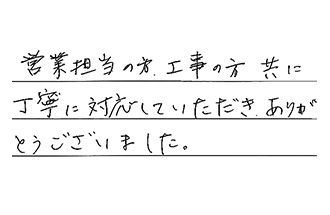 受付の電話対応も良く、営業の方も分かりやすく、スピーディーに工事を進めて下さり、助かりました。快適に過ごせて、感謝致します。