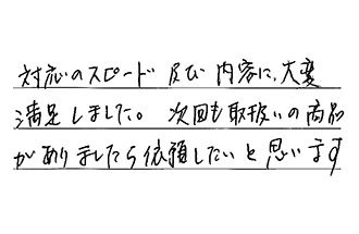 対応のスピード及び内容に、大変満足しました。次回も取扱いの商品がありましたら、依頼したいと思います。