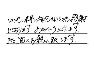 いつも素早い対応に、とても感謝しております。ありがとうございます。また宜しくお願い致します。