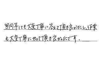 迅速なご対応で、大変満足しています。工事も説明通りで、丁寧な仕事でした。有難うございました。