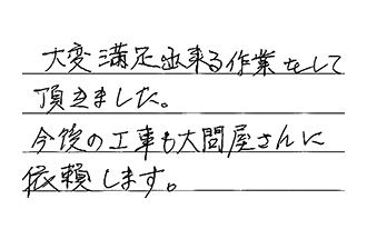 大変満足出来る作業をして頂きました。今後の工事も大問屋さんに依頼します。