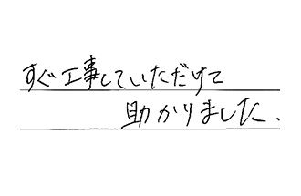 依頼をしてから施工までのスピードと、営業の方の説明も明確だったので、信頼できて安心でした。ありがとうございました。
