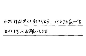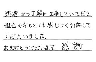この冬の寒い時期、お風呂に入れない不自由さの中、早急に対処して頂き、感謝しております。ありがとうございました。また何かありましたら、助けて下さい。よろしくお願いします。