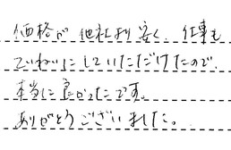 価格が他社より安く、仕事もていねいにしていただけたので、本当に良かったです。ありがとうございました。