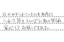 日がかぎられていたにもかかわらず、年内に入れて頂き、スムーズに取り替えられ、安心してお願いできました。