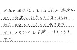 大変お世話になりました。又、何かあったら、お願いしたいと思います。