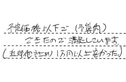 予定価格以下で(予算内)できたので、満足しています。(近郊他社より1万円以上安かった。)