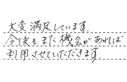 大変満足しています。今後もまた機会があれば、利用させていただきます。