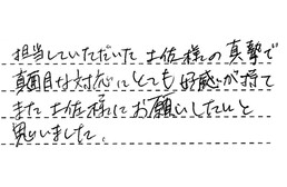 担当していただいた土佐様の真摯で真面目な対応に、とても好感が持て、また土佐様にお願いしたいと思いました。