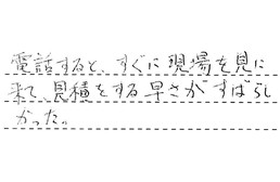 すばやい対応と、見積り時の方と工事の方が一緒でしたが、優しい良い方で、お願いして良かったです。