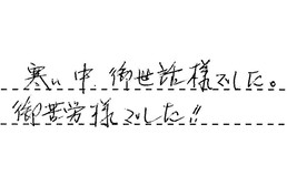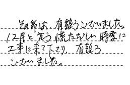 その節はありがとうございました。12月と言う慌ただしい時季に、工事に来て下さり、有難うございました。