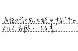 メールでの対応も迅速で、いろいろと相談にものっていただきました。ありがとうございました。
