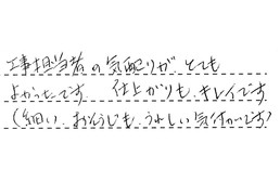 工事担当者の気配りが、とてもよかったです。仕上りもキレイです。(細かいおそうじも、うれしい気遣いです。)