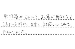 熱源機がこわれて、お湯がでなくなり、こまっている時に、お早く対応してくれて、たすかりました。
