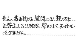 素人の基本的な質問にも、親切にお答えしていただき、安心してお任せできました。
