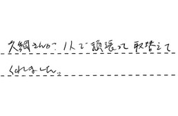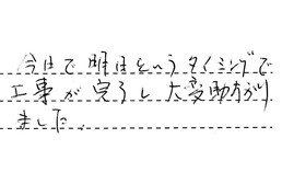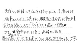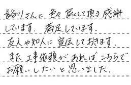長谷川さんに色々良くして頂き、感謝しています。満足しています。友人や知人に宣伝しておきます。また工事依頼があれば、こちらでお願いしたいと思いました。
