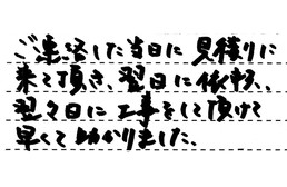 ご連絡した当日に、見積りに来て頂き、翌日に依頼、翌々日に工事をして頂けて、早くて助かりました。