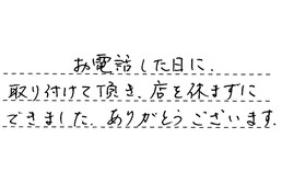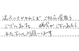 遠方にもかかわらず、ご対応有難うございました。機会がございましたら、また宜しく御願いします。