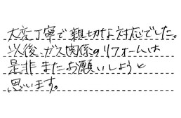 大変丁寧で、親切な対応でした。以後、ガス関係のリフォームは、是非またお願いしようと思います。