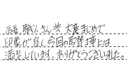 店長、職人さん共、大変まじめで、印象が良く、今回の取替工事には、満足しています。ありがとうございました。