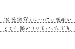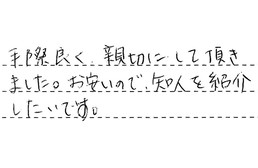 手際良く、親切にして頂きました。お安いので、知人を紹介したいです。