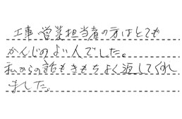 工事・営業担当者の方は、とてもかんじのよい人でした。私からの話も、きもちよく返してくれました。