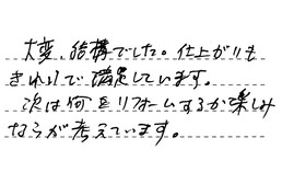 大変結構でした。仕上がりもきれいで、満足しています。次は何をリフォームするか楽しみながら考えています。
