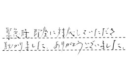 緊急時、即座に対応していただき、助かりました。ありがとうございました。