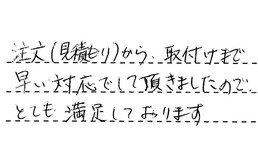 注文(見積もり)から、取付けまで、早い対応でして頂きましたので、とても満足しております。