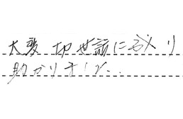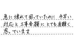 急に壊れて困っていたのに、手早い対応と工事金額に、とても有難く思っています。