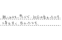 親しみやすい感じで、対応は良かったです。工事も早く、良かったです。