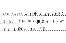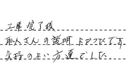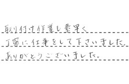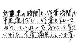 約束の時間も、作業時間も予定通りだし、作業もスムースかつていねいで、安心して見ていました。大変満足しています。