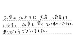 工事の仕上りに、大変満足しています。仕事も早くていねいでした。ありがとうございました。