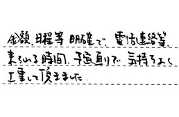 金額、日程等、明確で、電話連絡等、来られる時間、予定通りで、気持ちよく工事して頂きました。