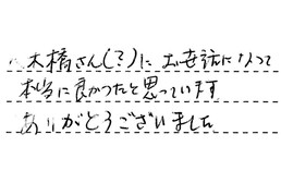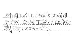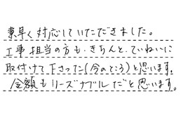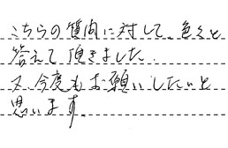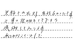 笑顔での応対、気持良かったです。工事の説明もして下さり、感謝しております。ありがとうございました。