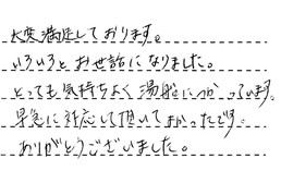 大変満足しております。いろいろとお世話になりました。とっても気持ちよく、湯船につかっています。早急に対応して頂いて、よかったです。ありがとうございました。