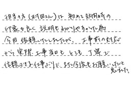 丁寧な対応で、こちらの希望も受け入れていただき、仕上がりも満足出来ました。また、リフォームの際は、お願いしたいと思いました。